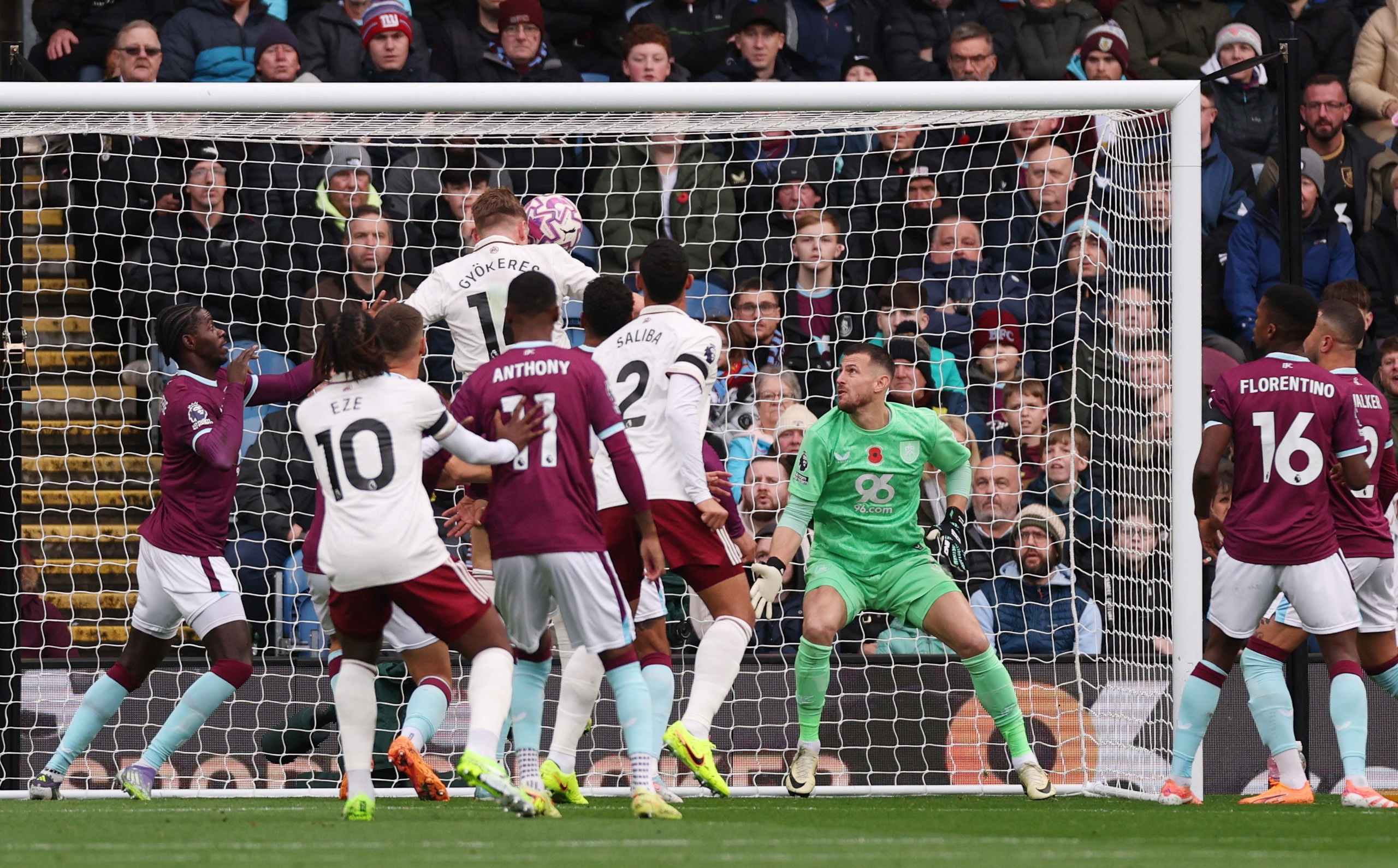 Đó là phút 14, Declan Rice thực hiện quả đá phạt góc bên cánh trái rất mạnh đưa bóng về phía cột xa và Gabriel chuyền vào cho Viktor Gyokeres bật cao đánh đầu tung lưới thủ môn Dubravka (Burnley) giúp Arsenal vượt lên dẫn 1-0.
