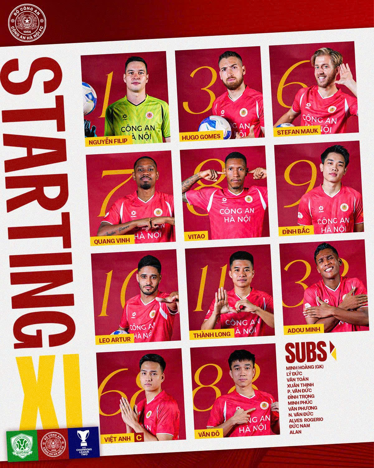 Khác với CLB Nam Định ở trận gặp Ratchaburi tối 17.9, CLB Công an Hà Nội (CLB ) chỉ sử dụng 4 ngoại binh trong màn so tài CLB Bắc Kinh Quốc An, diễn ra lúc 19 giờ 15 trên SVĐ Công Nhân (Bắc Kinh, Trung Quốc) trong ngày ra quân AFC Champions League 2.