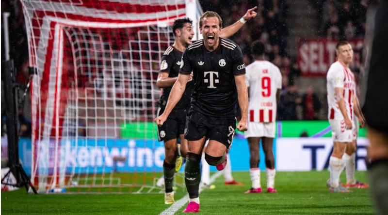 Tiền đạo Harry Kane lập cú đúp giúp Bayern thắng ngược Cologne 4-1 ở vòng hai Cup Quốc gia, qua đó tạo chuỗi thắng lịch sử tại năm giải VĐQG hàng đầu châu Âu.