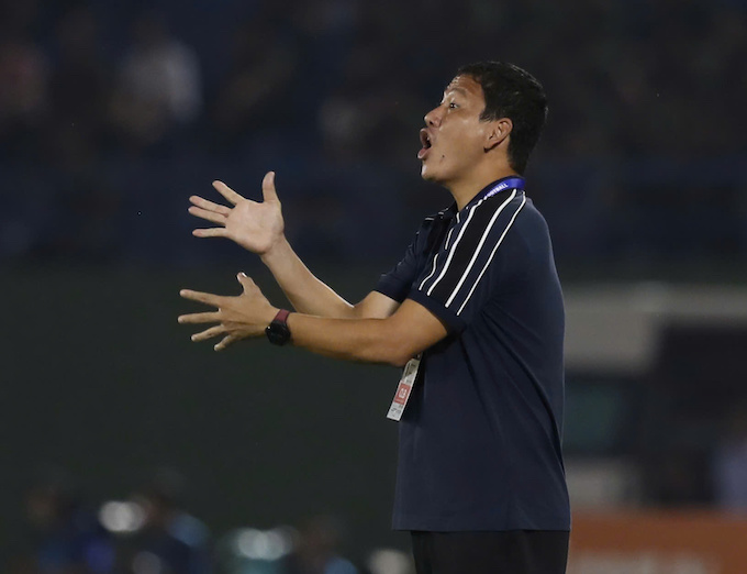 HLV Nguyễn Anh Đức chỉ đạo trận đấu của Becamex TP.HCM. Ảnh: Anh Khoa