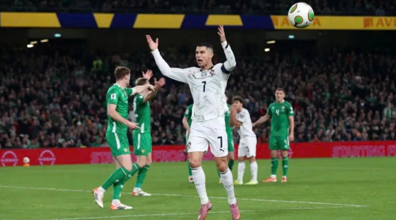 Siêu sao Cristiano Ronaldo nhận thẻ đỏ thứ 13 trong sự nghiệp, khi Bồ Đào Nha thua Ireland 0-2 ở lượt áp chót bảng F, vòng loại World Cup 2026.