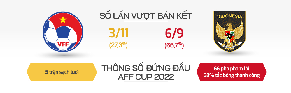 Tuyển Việt Nam cần cải thiện các thông số so với trận lượt đi, nếu muốn loại Indonesia ở lượt về bán kết AFF Cup 2022 hôm nay.