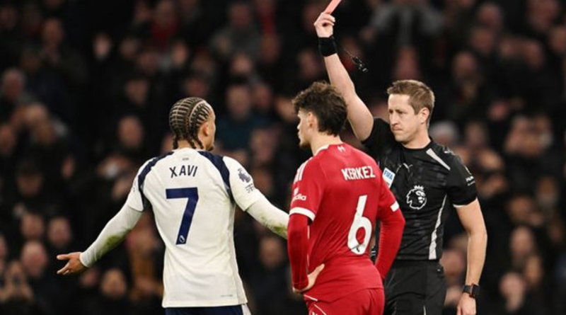 Đáng nói, tiền vệ Xavi Simons của Tottenham đã suýt rơi nước mắt sau khi bị trọng tài rút thẻ đỏ trực tiếp ở phút 33 trong trận đấu này. Pha phạm lỗi diễn ra khi cầu thủ 22 tuổi có cú đạp nhắm vào chân của Virgil van Dijk. Trọng tài John Brooks ban đầu rút thẻ vàng nhưng sau khi tham khảo VAR, quyết định rút thẻ đỏ trực tiếp.