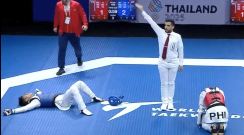 Võ sĩ Đinh Công Khoa đã có pha “lật kèo” giành chiến thắng ngoạn mục ở bán kết môn taekwondo SEA Games 33.