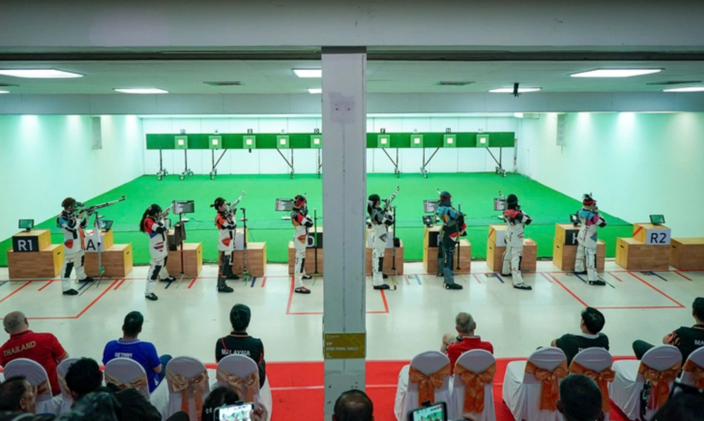 Toàn cảnh chung kết 10m súng trường hơi cá nhân nữ – Ảnh: NAM TRẦN